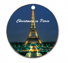 Porcelain Round, 2.8125" diameter, 2-Sided, Gloss, Pierced. Large ornament for Christmas or Easter, imprinted with family picture makes an heirloom gift item.