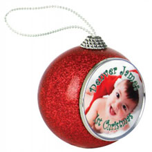 Glitter Ornament Series This 3" red glitter ornament is the perfect holiday gift for family, friends and coworkers this season. Great for photographs of company logos as your full color image can shine with sparkle this year!